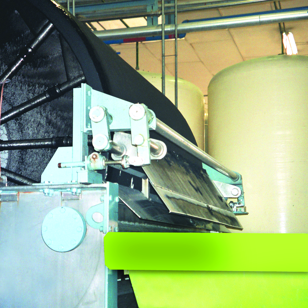 Шлам автоматически поддерживается на заданном уровне в питающей ванне, в которую частично погружен барабан фильтра.